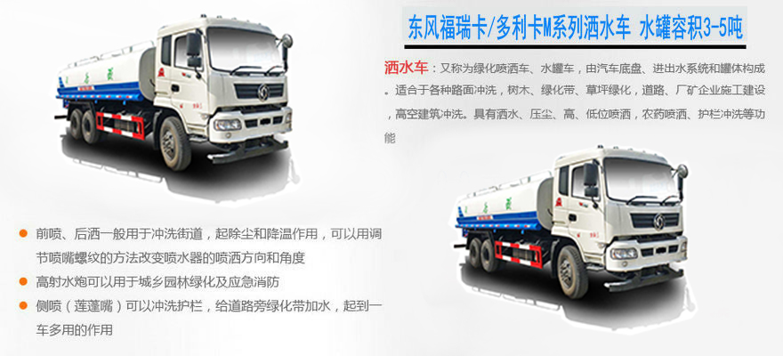 東風(fēng)小多利卡灑水車:3噸-5噸灑水車用戶最多選擇之一,東風(fēng)多利卡底盤,是東風(fēng)小霸王、福瑞卡的升級(jí)車型。 底盤配置:常用發(fā)動(dòng)機(jī)為朝柴95馬力、錫柴95馬力、四達(dá)95馬力,7.00-16輪胎,駕駛室前翻。