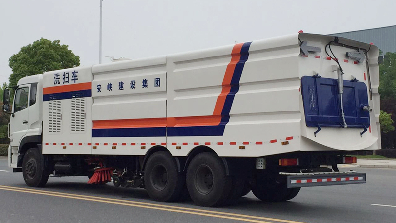 6)具備倒車保護(hù)裝置,在作業(yè)過(guò)程中如遇緊急倒車,智能化的控制系統(tǒng)會(huì)自動(dòng)停止作業(yè)并收回掃盤、吸盤和側(cè)噴桿;具有防止舉升垃圾箱翻車保護(hù);具有檢修安全保護(hù)。