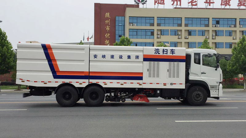 8)采用先掃,后沖刷,再吸收的工作方式,能將垃圾及污水一次清掃、沖刷、吸收干凈。路面作業(yè)后無(wú)塵土,無(wú)積水;